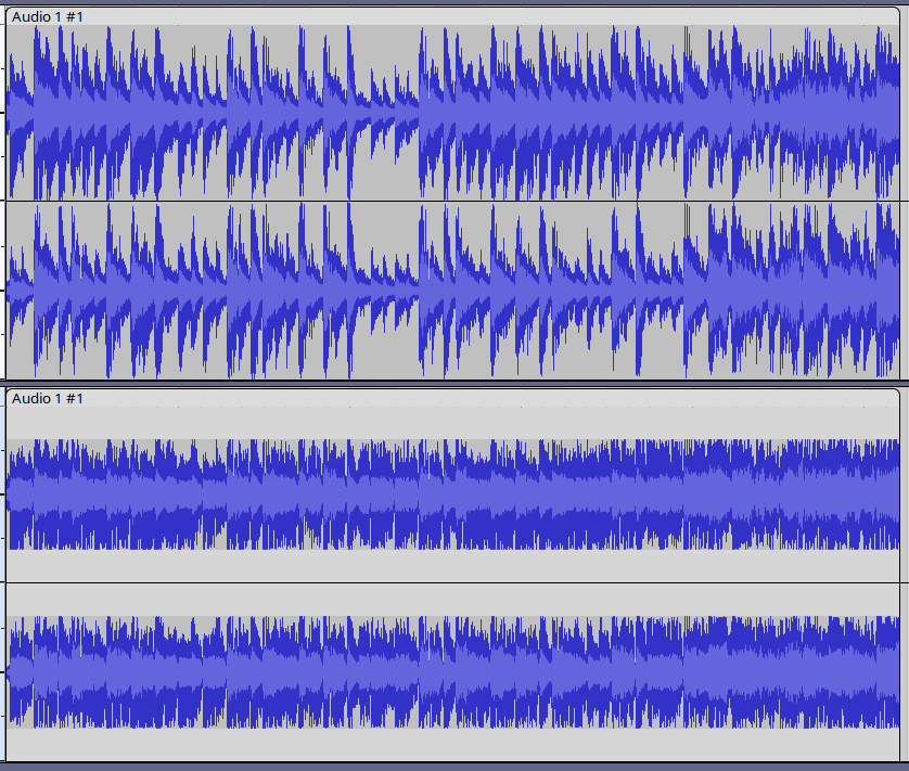 One solution that helps though is the use of a dynamic compressor. It's a node put at the end of the audio system that lowers the global volume if it gets above a certain threshold. This way the song can be loud enough when a few loops are activated, but automatically decreases its volume if there are a lot. Ensuring that the song stay within the same volume boundaries! However, I discovered that the compressor shouldn't have a too strong effect. At first I gave it a strong ratio and a large range, but it made the song… noisy and unpleasant? It's difficult to describe, but when the compressor is applied like that, it kinda "flattens" the result. Every sound gets mixed, there is no contrast anymore, and although the result sounds the same, it's exhausting to hear and even causes headaches.