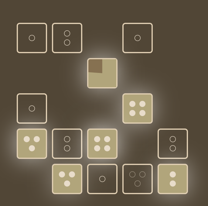 Early on I wanted it to be minimalist. It should be presented as a web page, accessible and responsive, with clicking as a main interaction. I drafted some ideas for card games, narrative experience, puzzles… All of them with instruments getting activated or deactivated through interactions. Eventually I was drawn to the idea of a rhythm box's grid, kind of like a DJ console. Each tile could represent an instrument, and have an "enabled" or "disabled" state. Different sections of the song could lead to different grid with their own instruments.